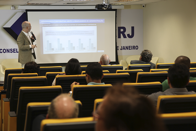 A fim de identificar o grau de contribuição do ensino acadêmico de Administração para a compreensão dos princípios de Governança Corporativa e sua aplicação prática nas organizações brasileiras, a Comissão Especial do CRA-RJ sobre o tema realizou uma pesquisa exclusiva com graduandos da área. Após a conclusão do estudo, foi feita uma apresentação na sede do Conselho pelo mestre em Administração Roberto Ribeiro, que está disponível na CRA-RJ Play.