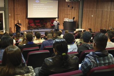 “O futuro da profissão mostra que as oportunidades e ameaças têm uma relação muito grande ou serão influenciados pelo próprio futuro do trabalho”, realçou o Adm. Marcelino Tadeu de Assis na apresentação da palestra “O Futuro da profissão: Ameaças e Oportunidades” e ainda afirmou que elas estão ligadas ao desenvolvimento da localidade e da formação do profissional.